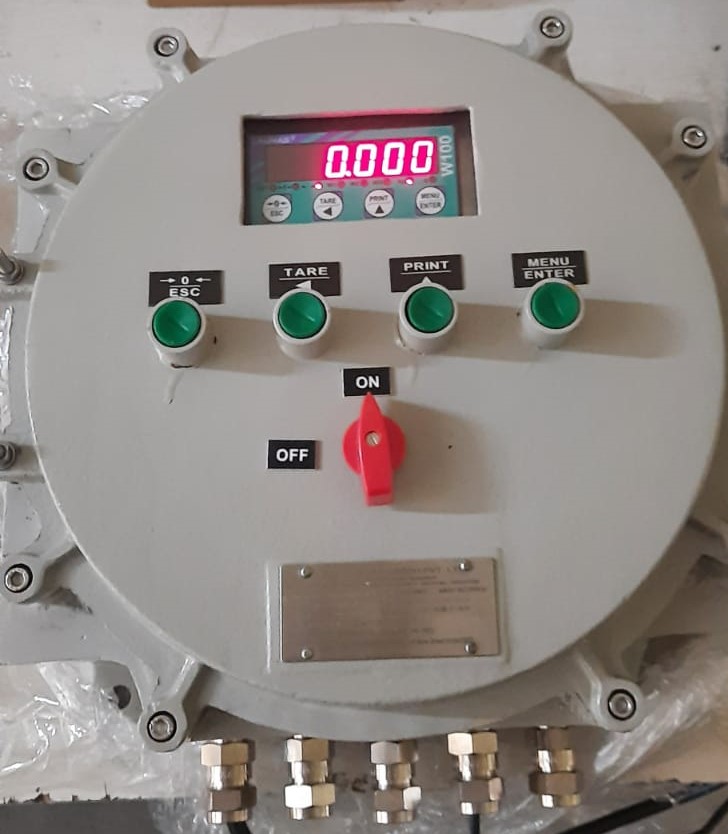 Supplier of Flameproof Weighing Controller having 4-20mA analog output, RS232, RS485 with Modbus RTU Communication, Relay output, Input for remote zero and print, suitable for any make analog loadcell weighing system and any six digit capacity, can be use for standard platform scale or any single or multi loadcell system
